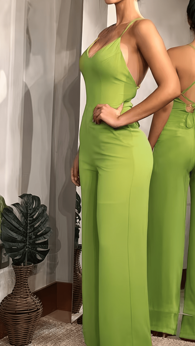 The CALYSSA Backless Wide-Leg Jumpsuit is designed to turn heads with refined confidence. Featuring a sleek fitted bodice and flowing long pants, it balances elegance with modern allure. The delicate cross-strap back adds a striking detail while maintaining a clean, sophisticated finish.